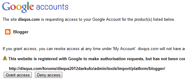 You will then be asked to grant Disqus permission to Import your comments. Click the Grant button.